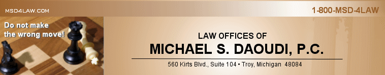 Attorney Michael Daoudi was raised in Detroit and has predominantly lived in the Detroit area his whole life. After college, Mr. Daoudi received his Doctorate of Jurisprudence at Detroit College of Law of Michigan State University in 1998.